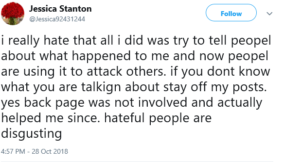 Random girl tweets about a sting to make Bedpage look dangerous