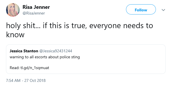 YesBP had the DDoS on October 26, and then random announced a massive Bedpage sting the next day. Then, Jenner quickly comments 2 minutes later?That’s not a coincidence.
