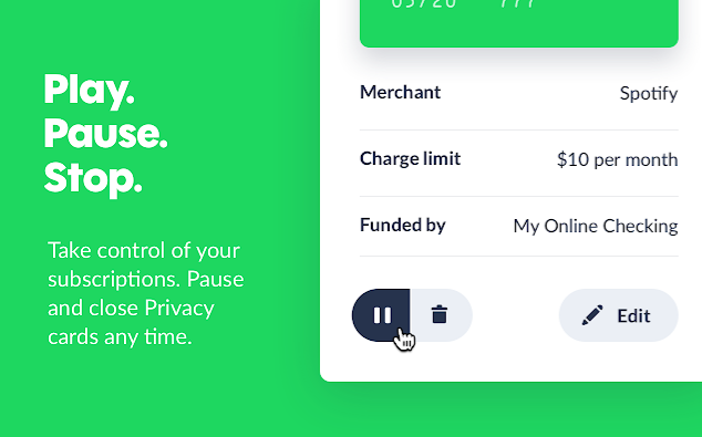Pause & cancel Privacy's virtual cards at any moment.