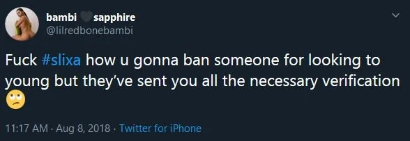 It's now 2018 with a new & scary law that's trying to make us all disappear, I started to post on more & more venues. I decided to give Slixa another go. I created my account and then I proceeded with the verification process. I failed the verification.