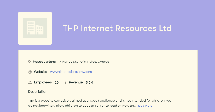 TER was originally THP Internet Resources LTD, but they are now No Excuses Agents LTD. ZoomInfo