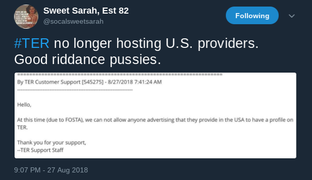TER is recklessly fighting their way to be king with no regards to all the potential risks. Especially during FOSTA…