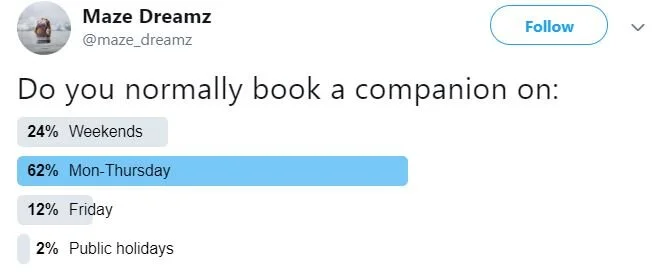 Again, due to pranksters and time wasters, escorts have began asking clients to cover the cost of transportation to any outcalls to prove they’re serious.