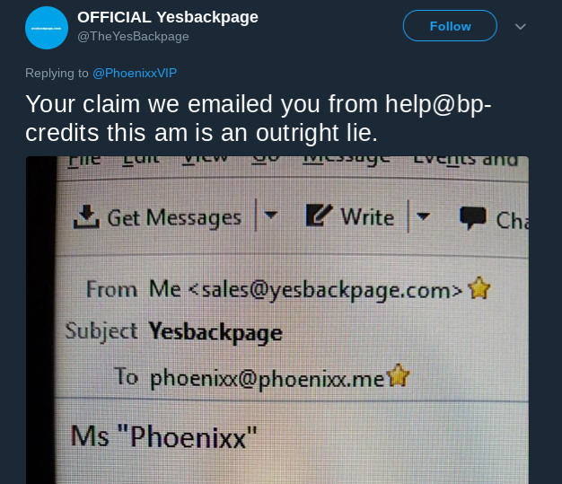 Finally, YesBP proved that they are in fact the scamming & offensive company, Backpagecredits.